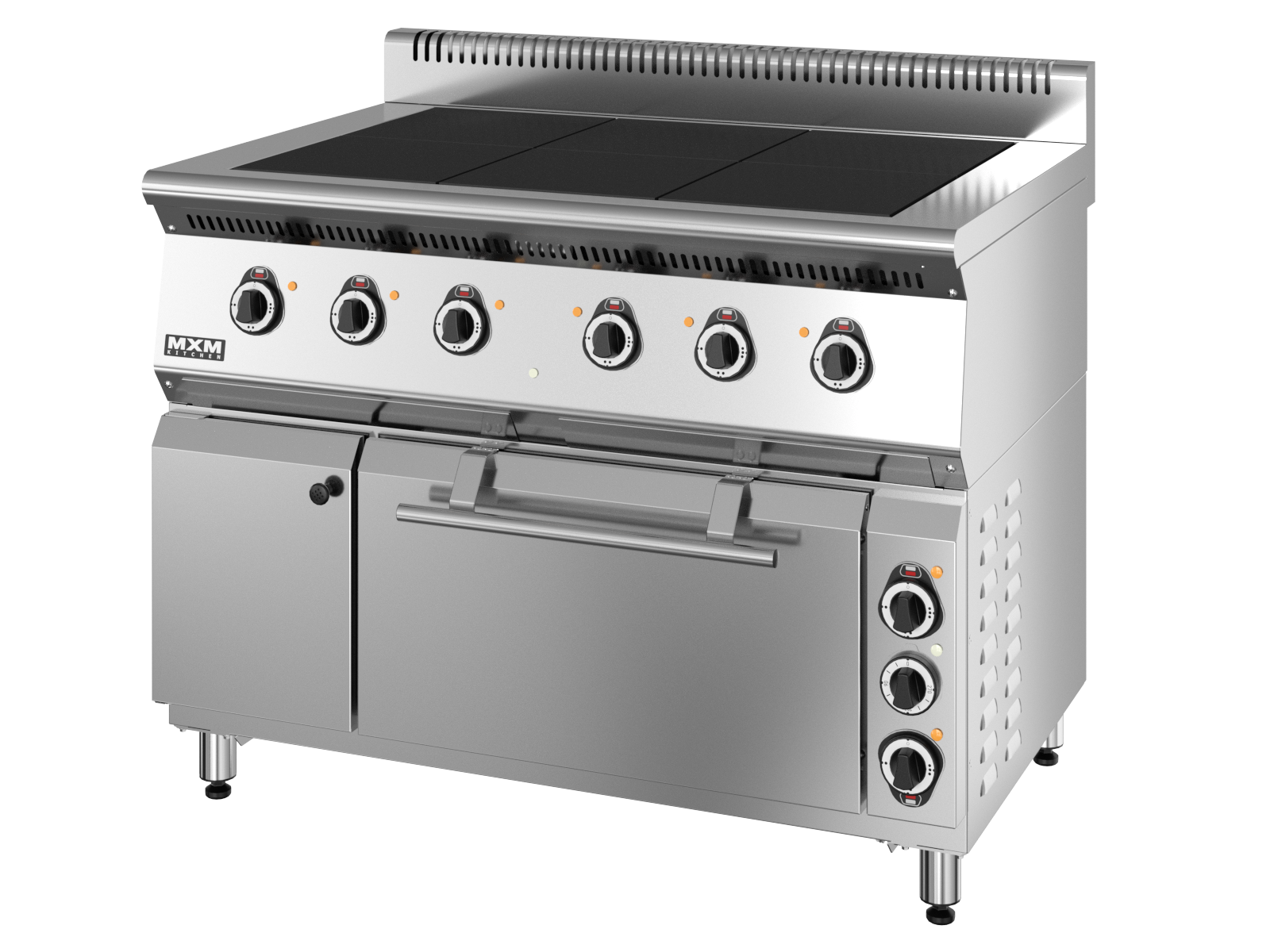 Размеры 1110x760x940 мм, лицевая часть ,боковины, духовка из нержавеющей стали,6чугунных конфорок, мощность 3 кВт, площадь одной конфорки 0,12 м, 3 режима регулировки мощности