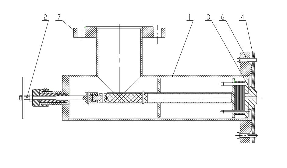 Конденсатоотводчик состоит из корпуса (1) с встроенным седлом (4) и с присоединительными фланцами (6,7), настроечного винта (2). Внутри корпуса смонтированы термочувствительный клапанный блок (3) с пакетом биметаллических пластин и плоских пружин.